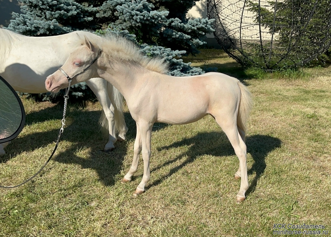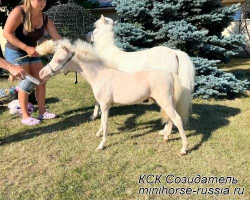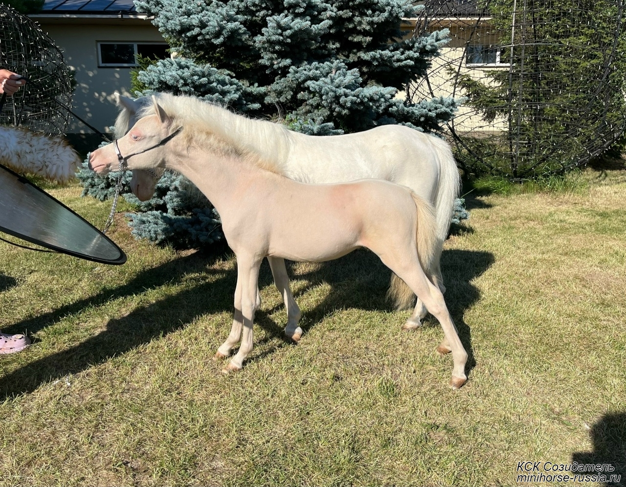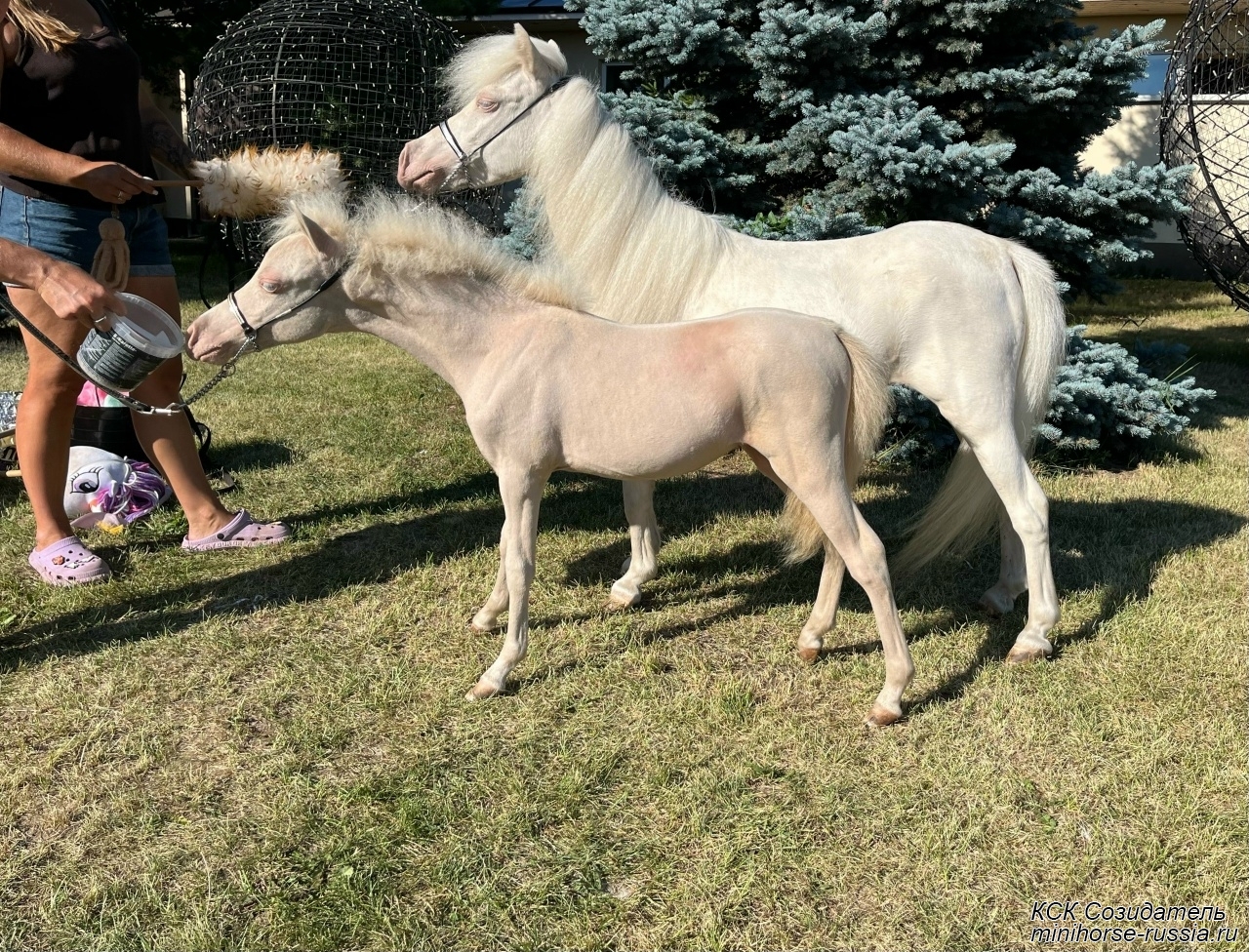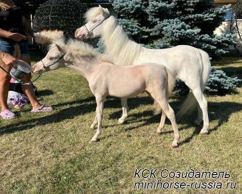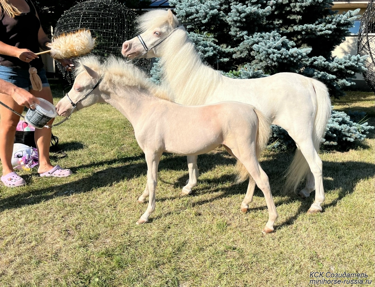 Отец - АЙС — COVERGIRLS IDOLS ICE KING - Чемпион АМНА, топовый жеребец-производитель, импорт из США, с известнейшей родословной - он является сыном двух лошадей мирового уровня – многократного Чемпиона Мира, двукратного Резервного Чемпиона Мира, а так же многократного Суприм Чемпиона АМНА и Национального Гранд Чемпиона Америки – легендарного жеребца-производителя First Knights Billy Idol и Резервного Чемпиона Мира - кобылы Buck Ons Suprema Donna, являющихся так же производителями Чемпионов Мира, Национальных Чемпионов и Гранд Чемпионов АМНА.