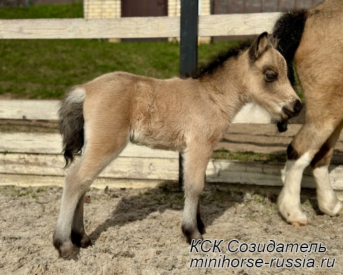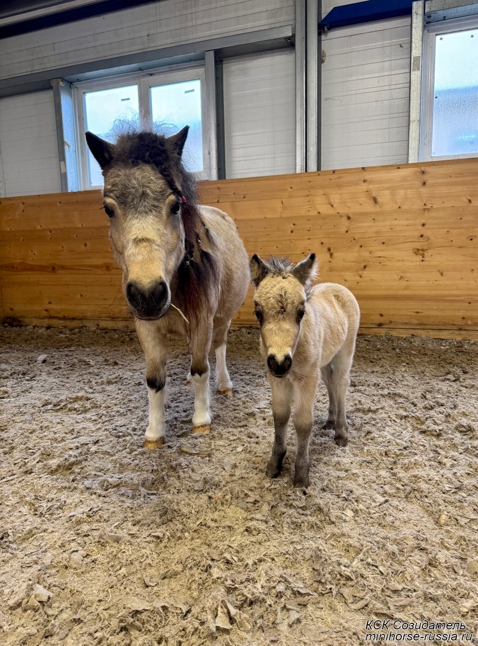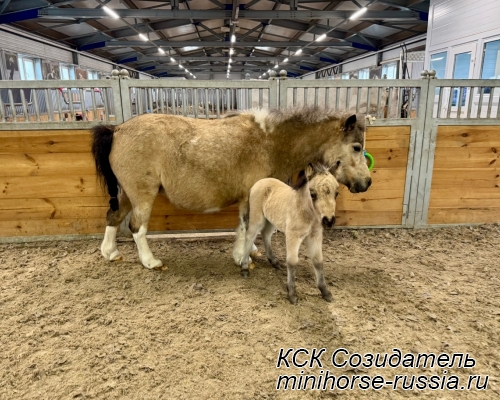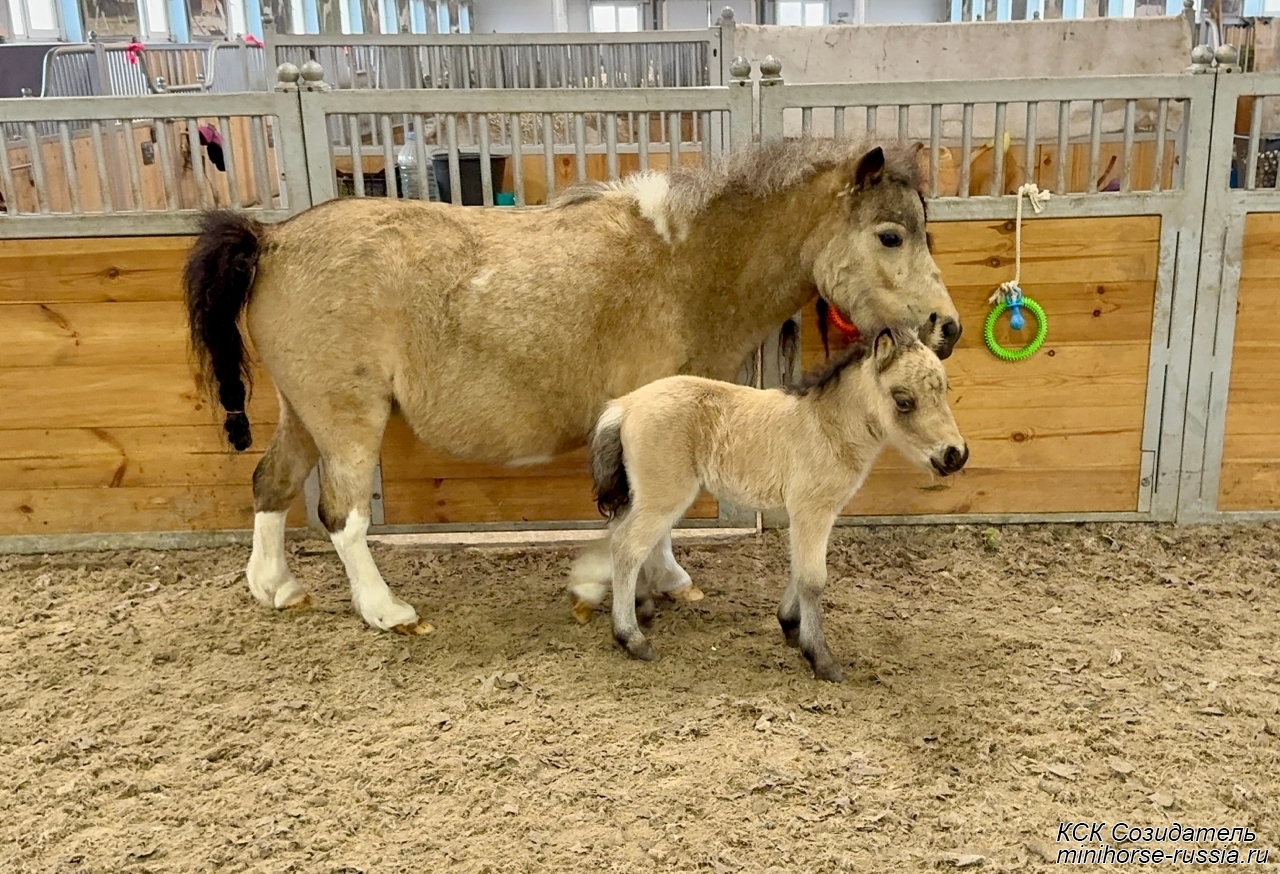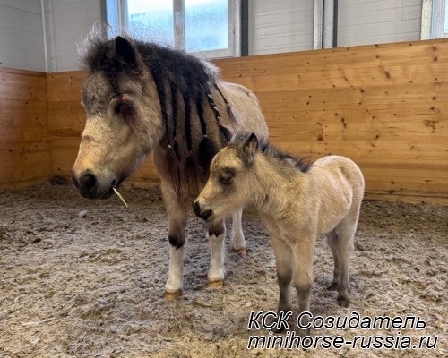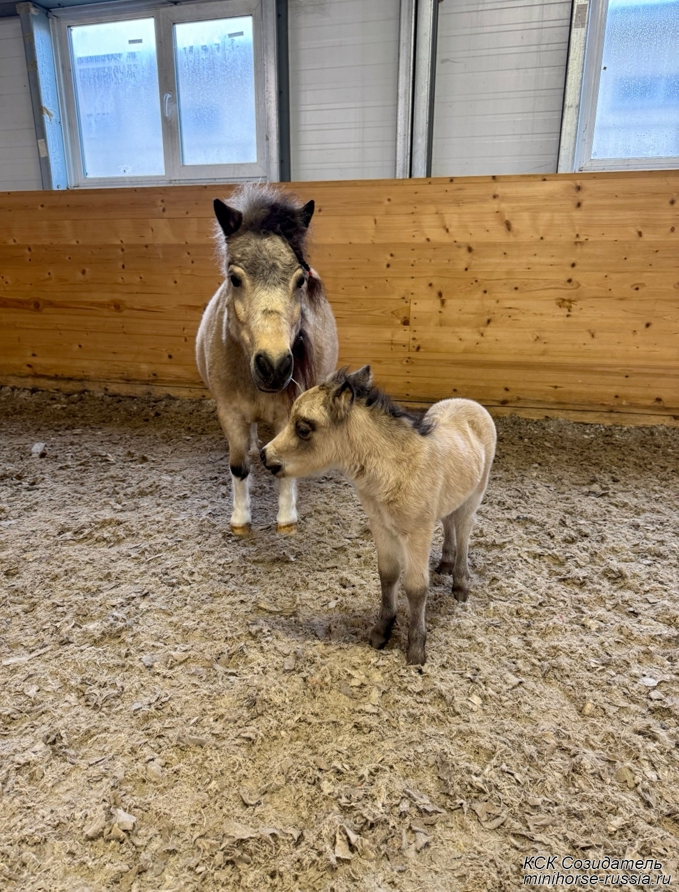 Отец: БОСКО — SOZIDATEL ALCHEMISTS BOSSY BOSCO – американский миниатюрный жеребец (АМНА) шоу-класса от импортных плем.лошадей из США и Европы. Его отец WINNING STREAKS MAGIC ALCHEMIST импортирован из США – имеет титул ЧЕМПИОНА МИРА и Резервного Чемпиона Мира, является сыном Резервного Чемпиона Мира и многократного производителя Чемпионов Мира. Мать EBF JOHNS GOLDEN VISION — импорт из Европы, дочь известного производителя в Европе - трёхкратного Чемпиона Европы и кобылы — многократной Суприм Чемпионки АМНА.