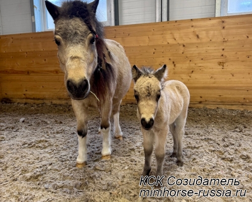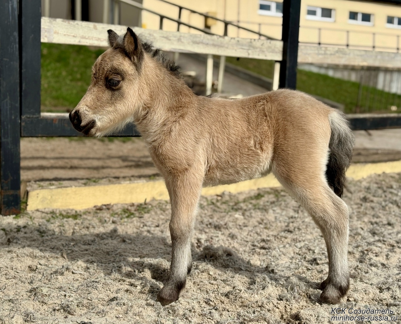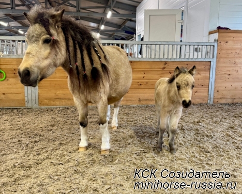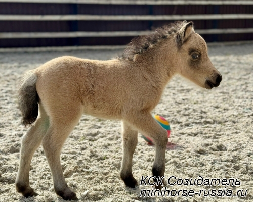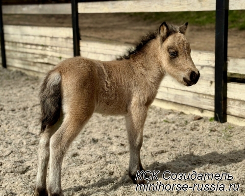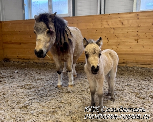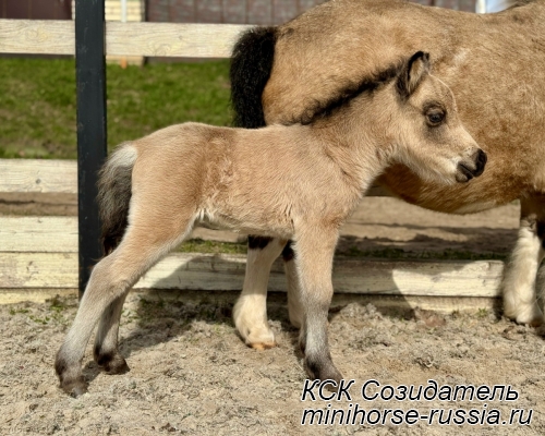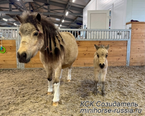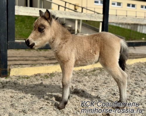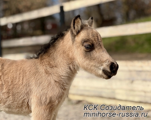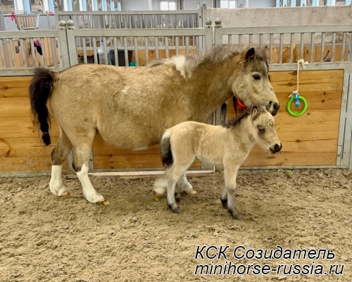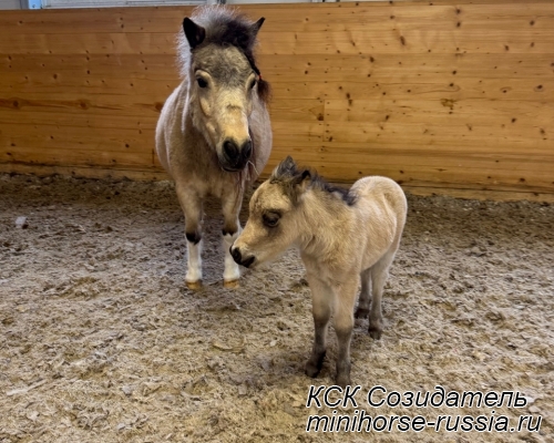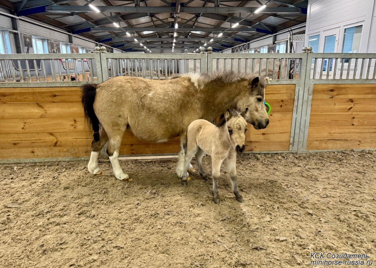 Отец: БОСКО — SOZIDATEL ALCHEMISTS BOSSY BOSCO – американский миниатюрный жеребец (АМНА) шоу-класса от импортных плем.лошадей из США и Европы. Его отец WINNING STREAKS MAGIC ALCHEMIST импортирован из США – имеет титул ЧЕМПИОНА МИРА и Резервного Чемпиона Мира, является сыном Резервного Чемпиона Мира и многократного производителя Чемпионов Мира. Мать EBF JOHNS GOLDEN VISION — импорт из Европы, дочь известного производителя в Европе - трёхкратного Чемпиона Европы и кобылы — многократной Суприм Чемпионки АМНА.